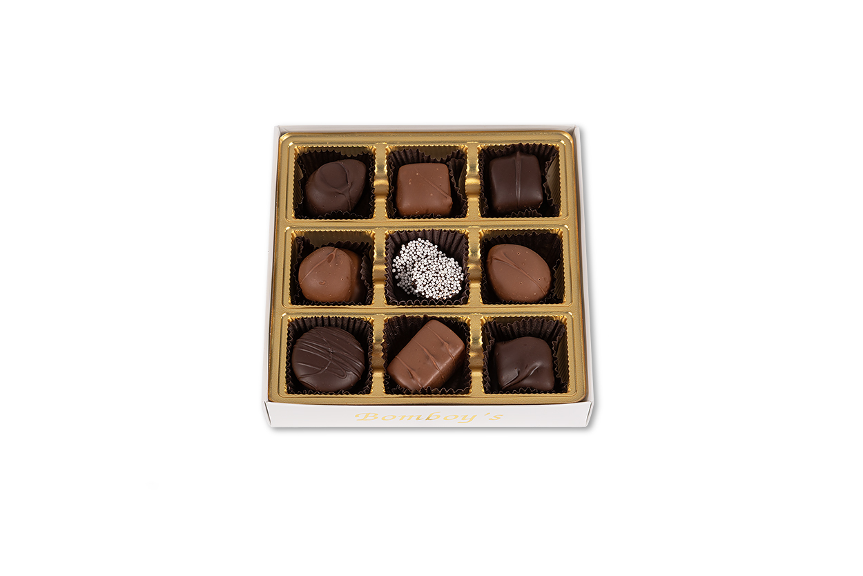 A 9 piece assortment of our most popular pieces. This assortment will include creams, peanut butter, caramels, nuts and more.